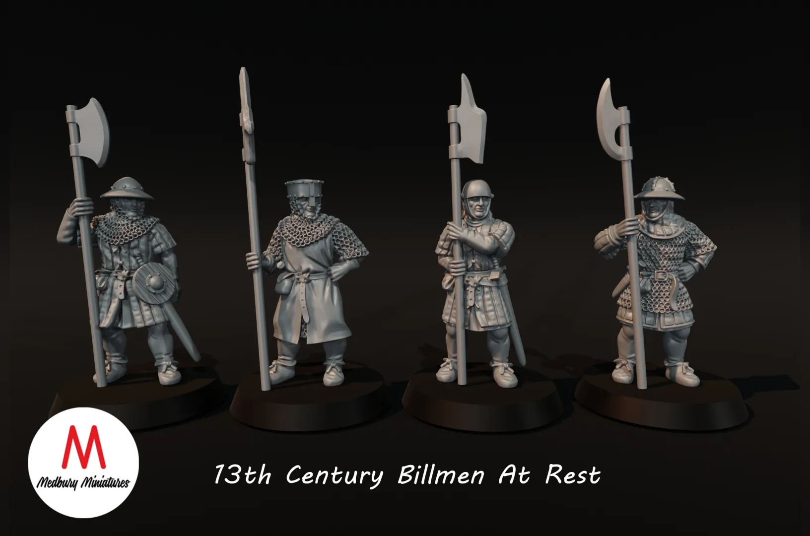 - Scottish 13th century Billmen at rest, 4 - figure set Description